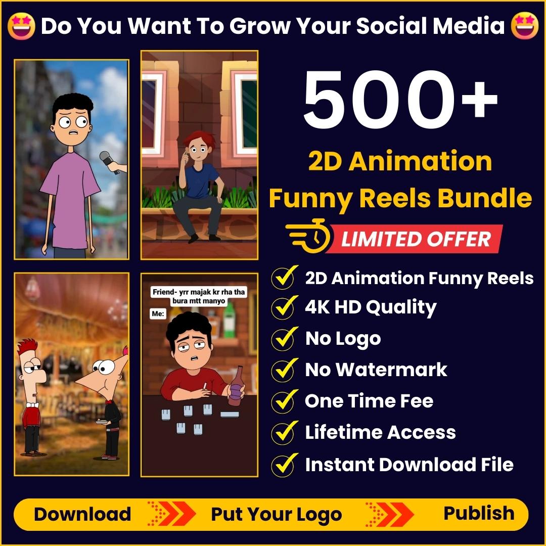 ✅ Get 500+ 2D Animation Funny 🤣 Readymade Reel Bundle